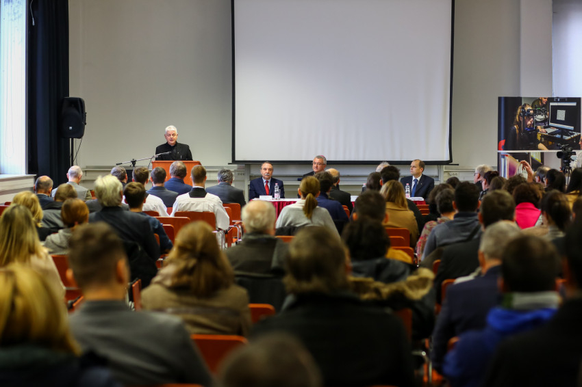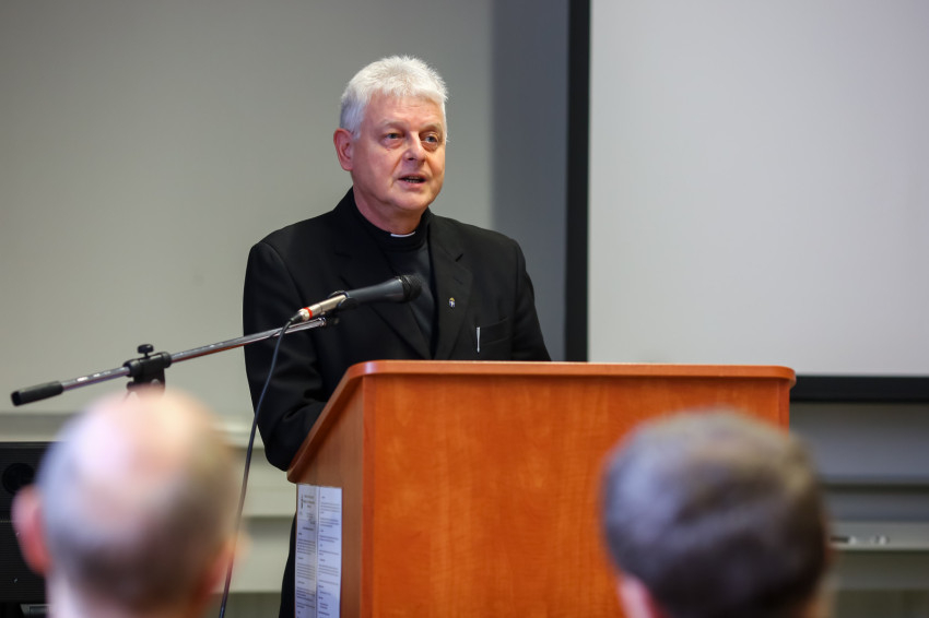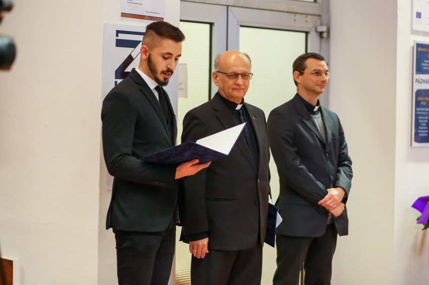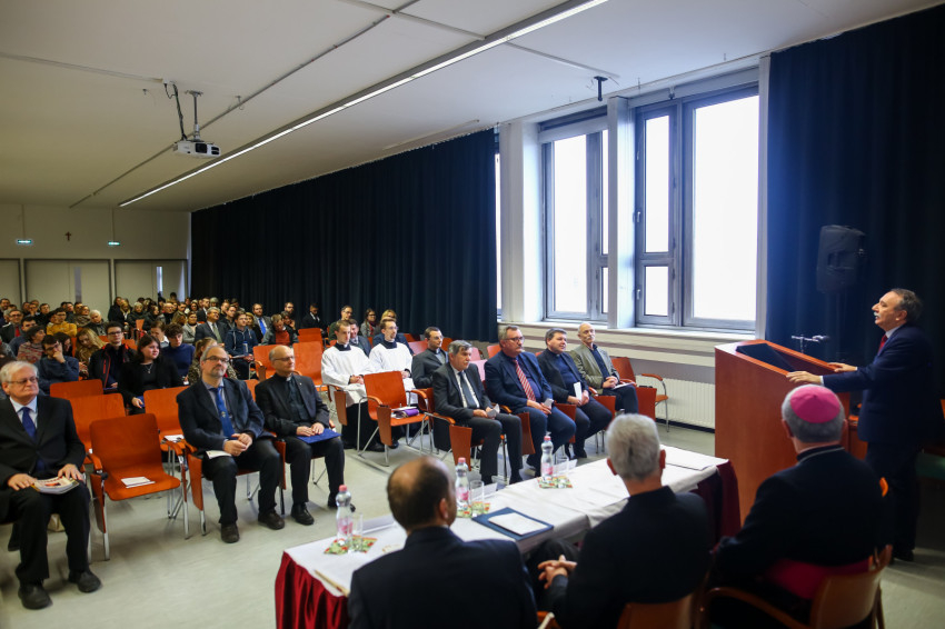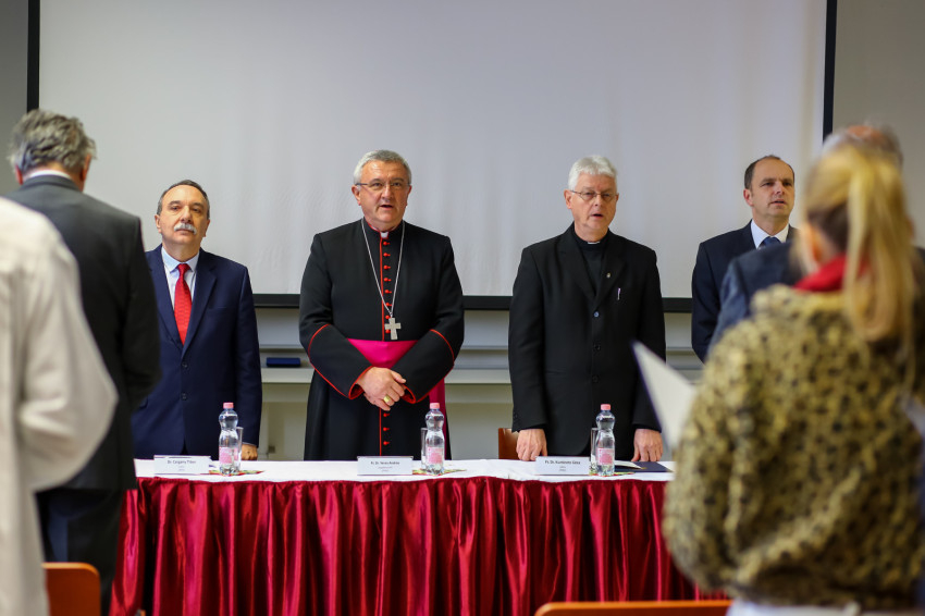 Kuminetz Géza rektor köszöntőjében úgy fogalmazott: a mennyei Atya áldását kérik az itt munkálkodókra és a hallgatókra, hogy valóban az igazság megismerésének vágya töltse be a szívüket, és alázattal ismerjék be, ha az igazsághoz tévedések révén jutnak el. A megismert igazság szabadít meg a szolgaság minden fajtájától, mert csak ez az igazság tehet igaz emberré, és ajándékozhat meg az autentikus élet vezetésének képességével.