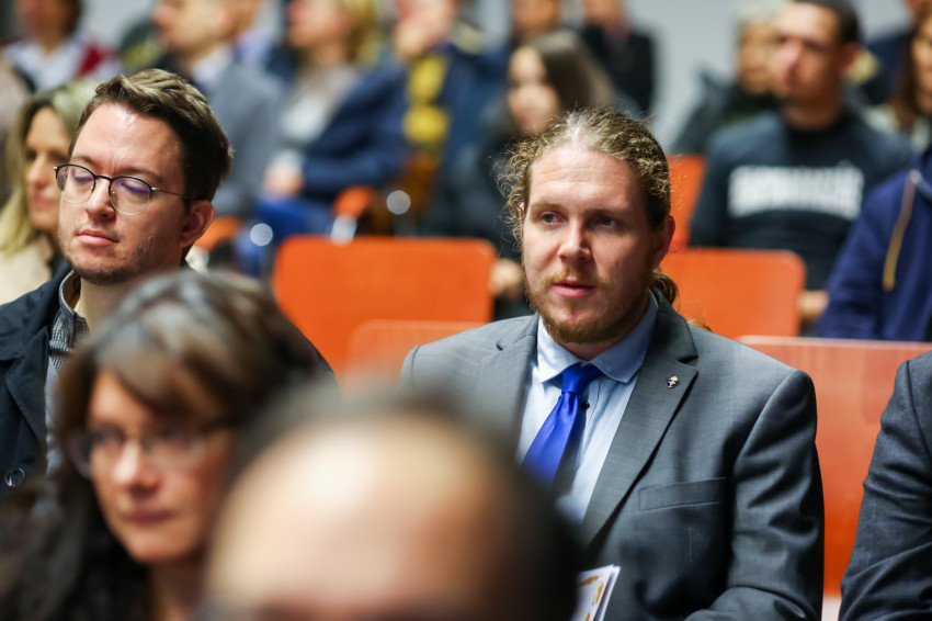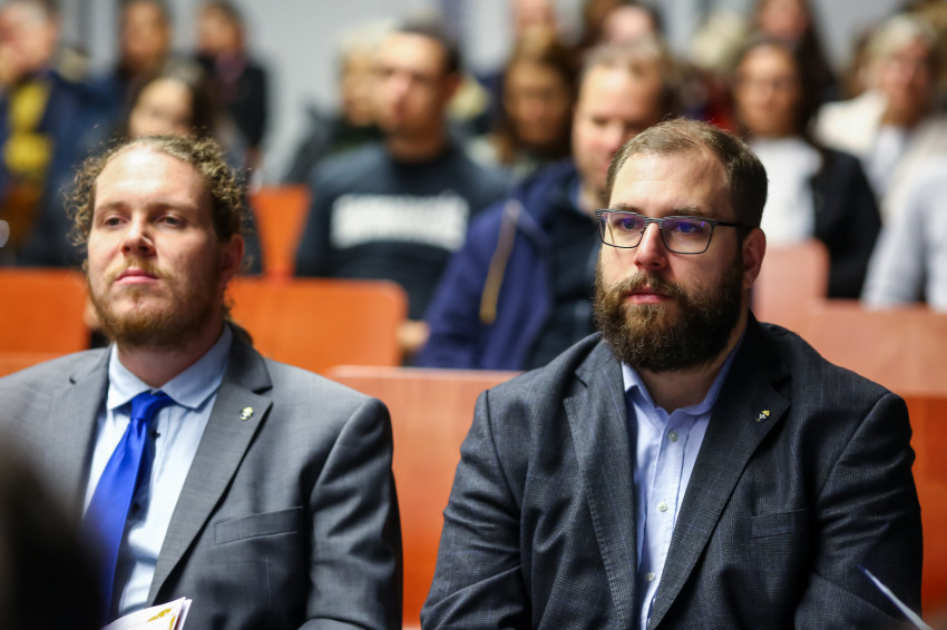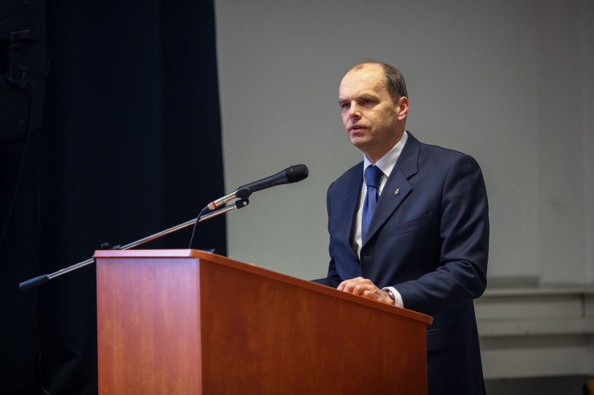 Mostani helyzetüket párhuzamba állította Dávid király sátorállításával, de kiemelte, hogy ez a sátor a szellemi élet közepén lehet, nemzetközileg is megbecsült tudóspartnerek között, és ahogyan a bibliai történetben, reméli, hogy itt is áldás lesz a házigazdákon és befogadottakon egyaránt. „A nehézségek ellenére is az a legfontosabb, hogy a hallgatóink és a hazánk érdekeit tudjuk szolgálni. Felelősek vagyunk egymásért, őrzői vagyunk egymásnak” – hangsúlyozta. Örömét fejezte ki, hogy létrejött a találkozás a filoszok és a természettudósok között, majd Saint-Exupéry szavait idézte: az a baj, hogy szerteszét heverő kövek vagyunk.