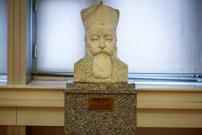 Hargittay Emil intézetvezető személyes élményekkel átszőtt előadásában áttekintette az 1635-ös Pázmány Péter-féle alapítás jelentőségét és sajátosságait, az egyetem majd 400 éves történetét, különös tekintettel az elmúlt 30 év történéseire; kitért a budai Ménesi úti és a piliscsabai campusra, illetve a budai Tárogató úti helyszínre is. „Az okos embernek nem hímes szavak, hanem erős valóság tetszenek” – idézte Pázmány Pétert előadása végén, és kiemelte, mennyire összetartók a pázmányos diákok.