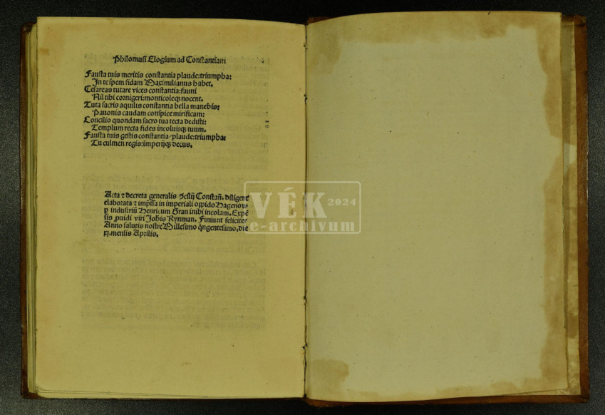 Könyvészeti leírása: VÉK 371. Concilium Constantiense. Acta et decreta. Ed. Jacobus Locher Philomusus et Conradus Summenhart. Hagenau: Heinrich Gran, pro Johanne Rynman, 11. Apr. 1500. 112 ff.