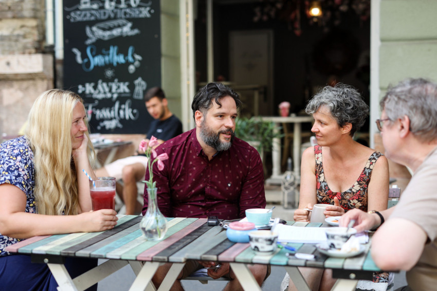 Budapest egyik leghangulatosabb kávézója, a Damjanich utcai La Lune teraszán találkozom a Gemma Énekegyüttes három tagjával, Horogszegi-Lenhardt Erikával, Kurucz Emesével és Tóth Mártonnal, az énekegyüttes művészeti vezetőjével. Dél van, az idő ragyogó, a nap szikrázóan süt, ontja magából a meleget.