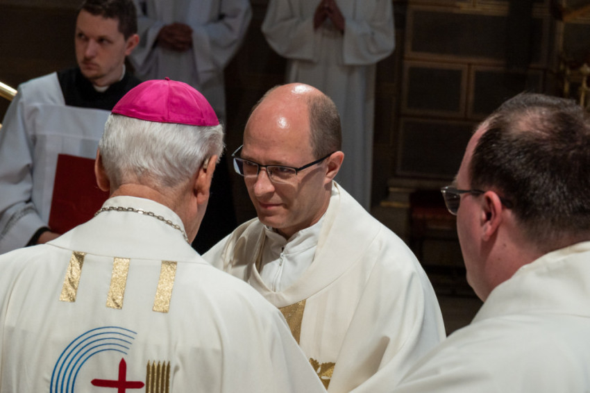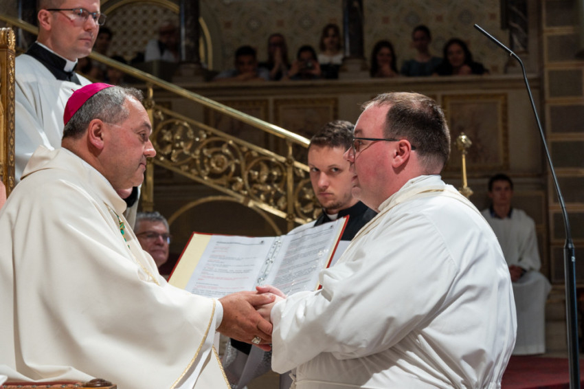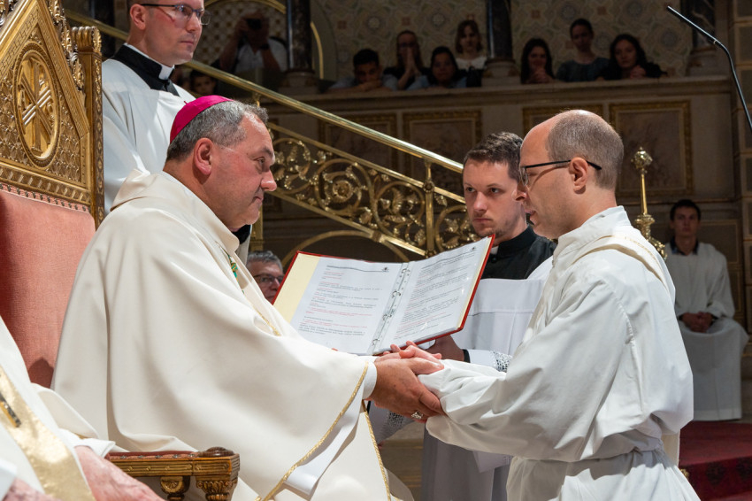 A szentmise előtt Máger Róbert püspöki irodaigazgató, a székesegyház plébánosa röviden ismertette az egyházi rend szentségének második fokozatában részesült szentelendők életútját. Úgy fogalmazott: Isten különleges kegyelmi időt engedett nekünk, hogy öt év elteltével újra papszentelést ünnepelhetünk a Pécsi Egyházmegye főtemplomában.