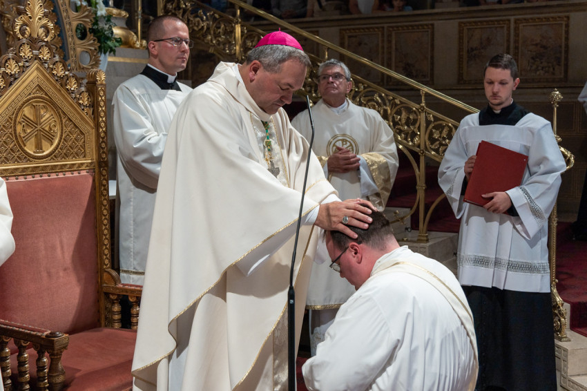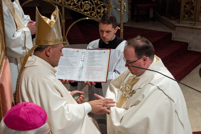 A szentelendők hűségük jeleként főpásztoruk kezébe tették kezüket.