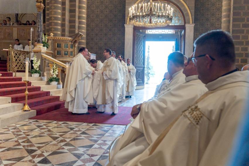 Ezután az új papok békecsókkal köszöntötték az őket felszentelő főpásztort, majd valamennyi jelen lévő pap is békecsókkal köszöntötte az új paptársakat.