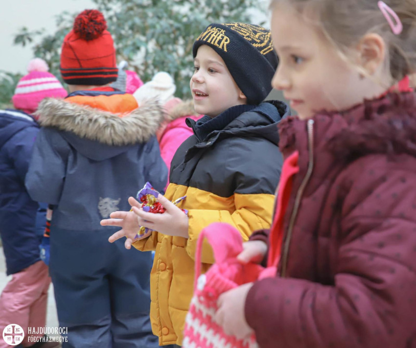 A metropolitától nem áll messze a humor – kaptak is a gyerekek egy nagy adag szaloncukoresőt tőle.