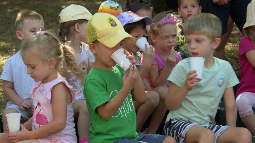 És ezután jöhetett a nap fénypontja, az ovisok megkóstolhatták a munkájuk gyümölcseként készült ízletes mustot.