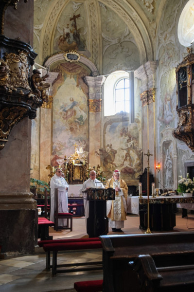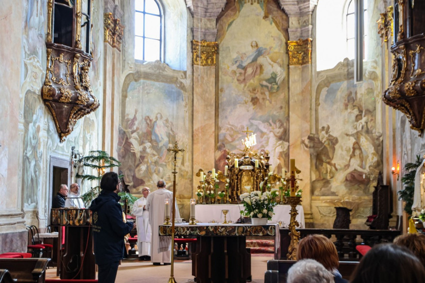 Szentmisén vettek részt, majd megcsodálták a magyarországi falfestészet egyik legnagyszerűbb alkotását magába foglaló Urunk mennybemenetele-templomot, Franz Anton Maulbertsch freskóival. Végigjárták az egykori püspöki palotát, ahol a tudományok és a művészetek pártfogójaként tisztelt mecénás püspök, Padányi Biró Márton és a barátjaként nagy becsben tartott Maulbertsch festőművész is élt és alkotott.