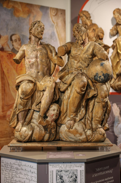 A kiállításba került egy eredeti példány Padányi Biró Márton Enchiridion könyvéből, amelyben fanatikus hittel harcolt a török hódoltság utáni országban már-már teljesen elvesztett katolikus vallás megerősítéséért, újraszervezéséért. A püspök legszemélyesebb ügyének tekintette a Szentháromság Egyisten kultuszát és annak terjesztését is. Ennek érdekében hatalmas egyházmegyéjében bevezette az ún. Szentháromság koronájának áhítatát, más néven az Angyali olvasó imádkozását.