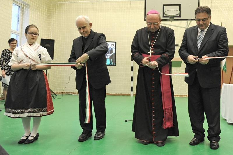 Dienes Béla igazgató köszöntőbeszédében kiemelte, az intézmény 2011 szeptemberében került a Debrecen-Nyíregyházi Egyházmegye fenntartásába, azóta két nagyobb beruházás is történt. 2013-ban a tetőteret bővítették, most pedig új tornateremmel gazdagodott az iskola, amelynek 110 millió forintos beruházási költségét a fenntartó biztosította.