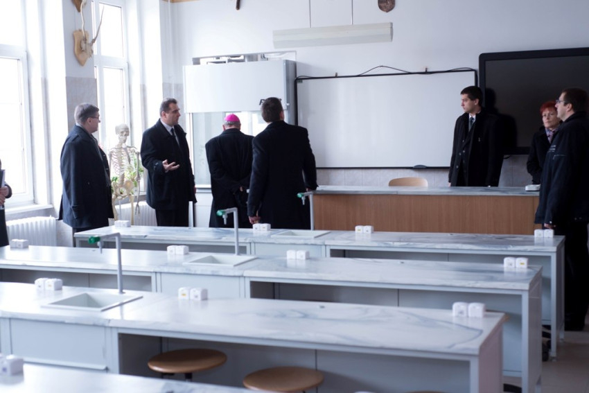 A szentmisét követően a megyéspüspök a Szent László Katolikus Középiskola, Általános Iskola, Kollégium és Óvoda intézményegységeivel ismerkedett meg, találkozott a nevelőtestület tagjaival, majd az épület aulájában a dolgozókkal együtt gyújtották meg a harmadik adventi gyertyát.
