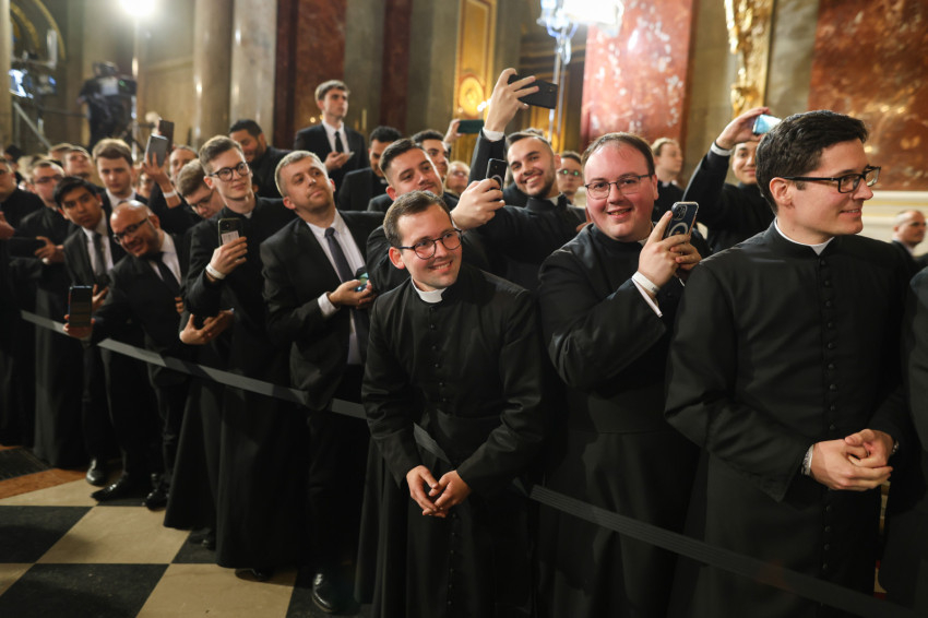 Beszélt a Szentatya a papság túlterheltségéről, hogy kevesen vagyunk, de ebből is azt hozta ki, hogy a hivatásokat vonzóvá kell tenni, éljük meg örömmel a papságunkat. Arra is kitért a Szentatya, hogyan tehetjük vonzóvá a hivatásokat, itt a domonkos rendi Krisztina nővér tanúságtételére reflektált: