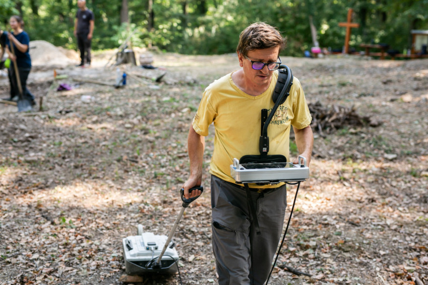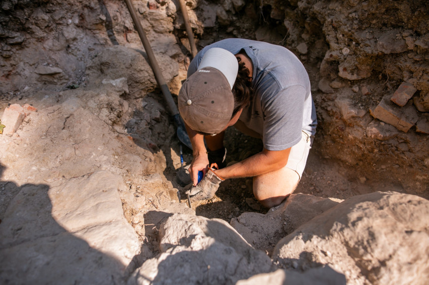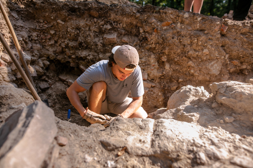 Az idén év elején fiatalon elhunyt ásatásvezető, Végh András nagy űrt hagyott maga után. Szerepét az egyetem részéről Papp Adrienn és Takács Ágoston vette át a terepen. Látogatásunk idején Takács Ágoston irányította a régészhallgatókat, őt kérdeztük az idei kéthetes kutatómunka eredményeiről. Elmondta, hogy most a templom hajójának északkeleti sarkát tárják fel, közvetlenül a szentély indításánál, az egykori diadalív környezetében.