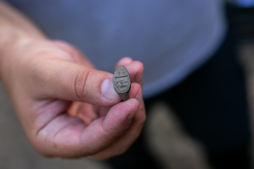 Az idei feltárás első hetében egy mintázatos padlótégla töredéke került elő, az egyik fa alól pedig egy madármotívumot ábrázoló, zöldpatinás pecsétgyűrű. Amíg ott jártunk, egy elszíneződött üvegdarab, a feltételezett ajtónyílás mellett pedig ismét egy nagyobb darab faragott kő „sarka” bukkant elő a gondosan, rétegenként haladó terepmunka során; talán egy mérműves ablak töredéke. A környéken, még az említett forrás közelében is sok az éremlelet, de szép számmal találtak textilplombákat is, ami az egykor itt zajló élénk kereskedelemre utal. A feliratos alapkő alól származó velencei aranydukát és a lábazathoz behintett pénzérmék azt mutatják, hogy nagyvonalú mecénásai lehettek az itteni pálos szerzeteseknek.