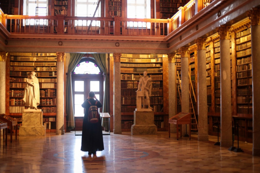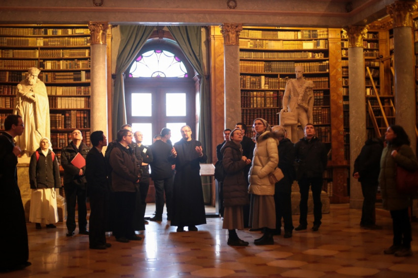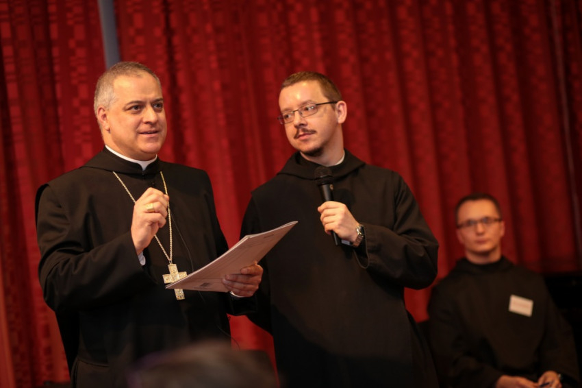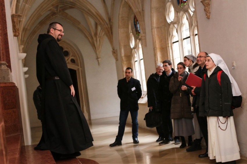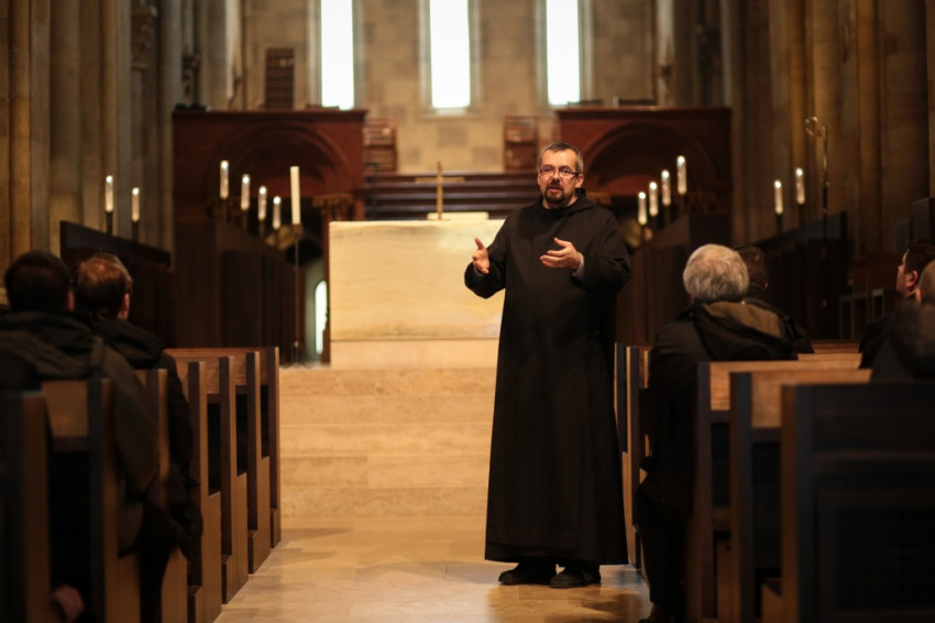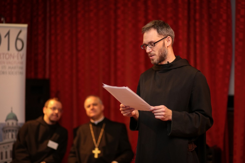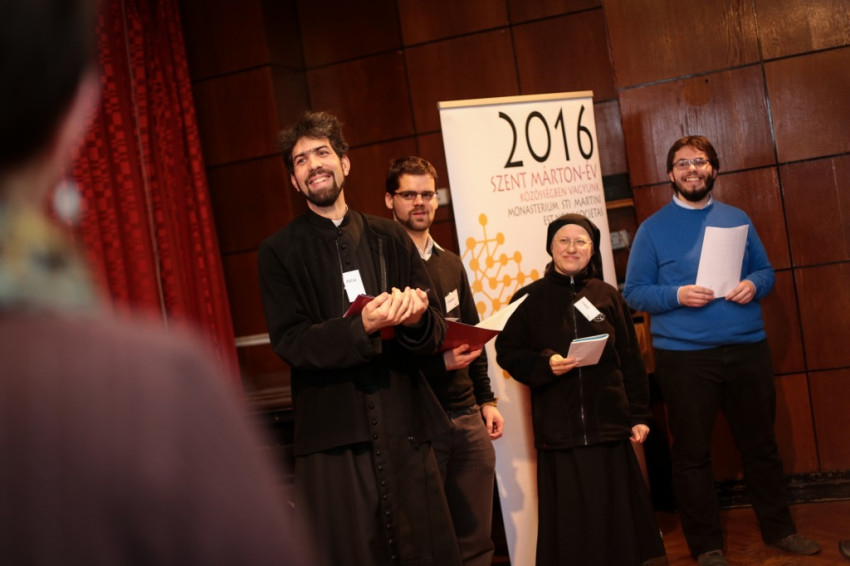 Jurinka Szilveszter, a Pannonhalmi Főapátság egyszerű fogadalmas növendéke, aki a délelőtti programot koordinálta, szintén üdvözölte a résztvevőket, majd átadta a szót Dejcsics Konrád ünnepélyes fogadalmas bencés szerzetesnek, a főapátsági könyvtár igazgatójának.