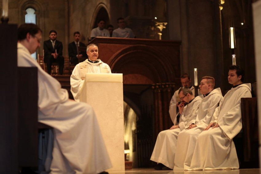Dejcsics Konrád Szent Márton életéről és személyéről beszélt a szerzetesnövendékeknek és kispapoknak. Elmondta, hogy mivel ő maga szombathelyi származású, erősen kötődik Szent Mártonhoz, akinek személye összekötő kapocs Szombathely és Pannonhalma között.