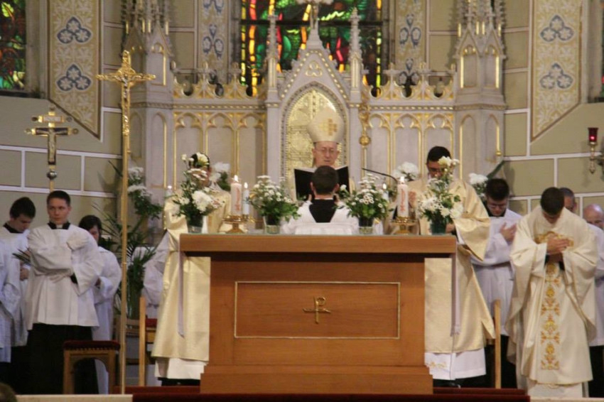 A homília után következett a jelöltek ígérete, majd a Mindenszentek litániája, mely alatt a szentelendők a földre borultak.