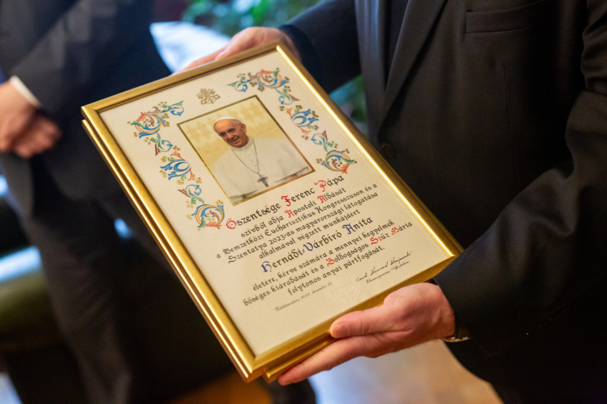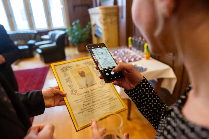 Veres András püspök köszöntőjében elmondta, Ferenc pápa saját jogon időnként írásos formában is áldást ad azok számára, akik valami sajátosat tettek a közösség érdekében.
