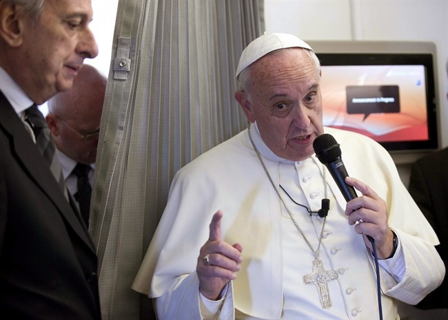 Ferenc pápa: Köszönöm az okos kérdést! Úgy gondolom, hogy mindkettő alapvető emberi jog: a vallásszabadság és a szólásszabadság. Nem lehet…, gondoljunk csak…. Ön francia, menjünk Párizsba! Beszéljünk világosan! Nem lehet elrejteni azt az igazságot, hogy mindenkinek joga van a saját vallását szabadon gyakorolni, anélkül hogy megsértene bárki mást. Így tesszük, így szeretnénk tenni mindnyájan! Másodszor, nem sérthetünk meg másokat, nem kezdhetünk háborút, nem ölhetünk a saját vallásunk, vagyis Isten nevében! Ami most történik, az megdöbbent bennünket. De állandóan gondoljunk a történelmünkre: mennyi vallásháborúban volt részünk? Gondoljon csak ön a Szent Bertalan éjszakájára! Hogyan értsük ezt? Ez egy eltévelyedés! Isten nevében ölni – ez eltévelyedés! Azt hiszem, hogy ez a legfontosabb dolog a vallásszabadság tekintetében: szabadsággal kell eljárni, bárki megsértése nélkül, kényszerítés és gyilkolás nélkül.