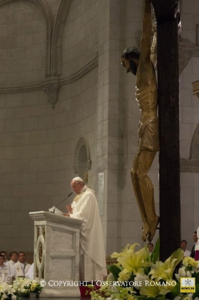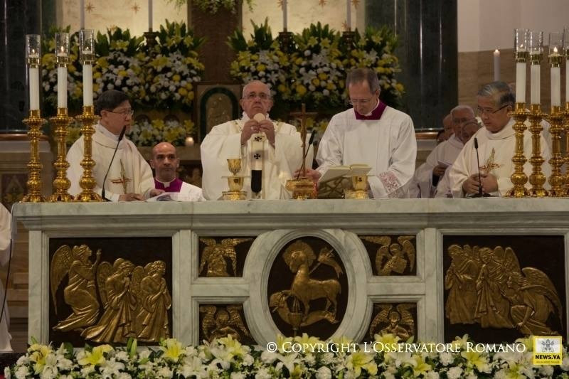 Ferenc pápa homíliája befejező részében a hit teremtőképességéről szólt. Ennek jegyében született meg a Fülöp-szigeteken az Istenben való mélységes hit, valamint a Szűzanya iránti buzgó tisztelet, és a meleg szívbéli ragaszkodás a rózsafüzér-imádsághoz. Ennek a nagy örökségnek erős misszionárius jellege van. Azért áldalak meg benneteket, hogy Krisztus kiengesztelő szeretete mindjobban hassa át a Fülöp-szigeteki társadalmat, és rajtatok keresztül a világ legtávolabbi részeit is.