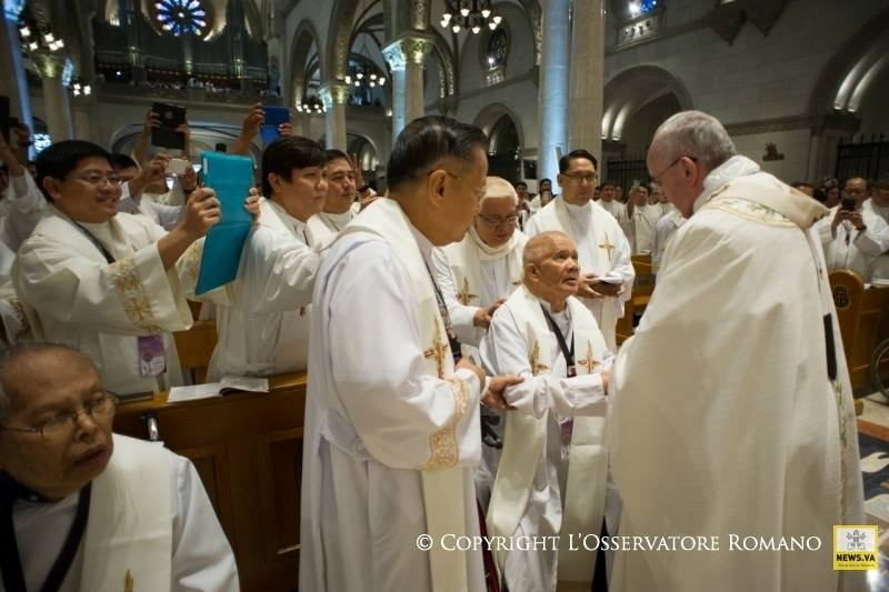 Ferenc pápa arra kérte a jelenlevőket, hogy vigyék haza az ő szeretetét az otthon maradt időseknek, betegeknek és kicsiknek. Miközben a Fülöp-szigetek az ország evangelizálásának ötszázadik évfordulójára készülődik, hálásan emlékezünk azokra a püspökökre, papokra és szerzetesekre, akik rátok hagyták ezt az örökséget. Ők nemcsak evangéliumot hirdettek és egyházat építettek, hanem a szeretet evangéliumi üzenete által ihletett társadalmat kovácsoltak a megbocsátás, a szolidaritás és a közjó érdekében végzett szolgálat jegyében.
