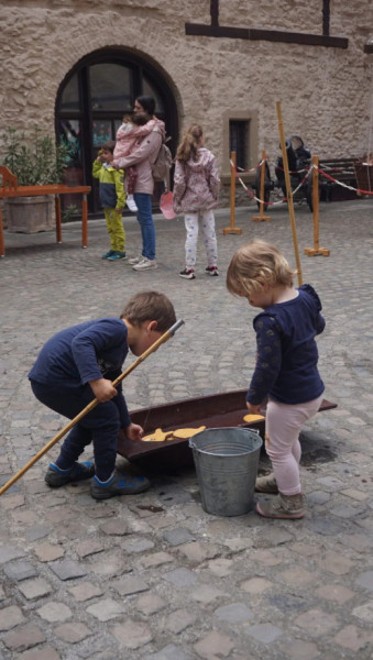 Mindeközben a jelen lévő gyermeksereg már el is foglalta a vár különböző helyiségeit, ahol kézműves-foglakozások, ügyességi játékok és ugrálóvár várta őket. A szülői felügyeletben ezúttal a MALKA (a Miskolci Egyházmegye Ifjúsági Bizottságának önkéntesei) is segítséget nyújtott. Délután a Vaga Banda gólyalábasok szórakoztatták a kicsiket és nagyobbakat.