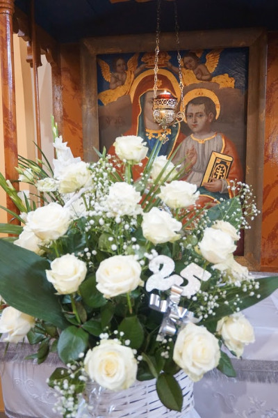Thodory Ferenc Sajópetriben parókus, ide érkezett az ünneplő közösség: paptestvérek, családtagok, helyiek, környékbeliek és a korábbi szolgálati helyekről érkezett hívek. A liturgián a Szent Efrém Férfikar egészítette ki a kántori szolgálatot. A Szent Liturgia elején Szarka József, Anita tisztelendő asszony édesapja megáldotta leányának Ferenc atyával huszonöt éve kötött házasságát.