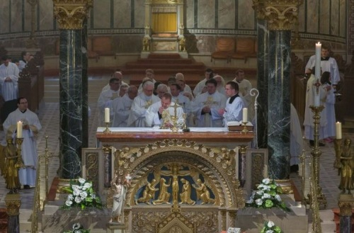 „Menjetek az egész világra, hirdessétek az evangéliumot minden népnek! Menjetek – a feltámadottól hangzik el a küldő szó” – mondta Udvardy György pécsi megyéspüspök homíliájában. Jézus, aki mindvégig megtette az Atya akaratát, megismerteti az emberekkel, hogy mennyire szeret minket az Isten. Ennek az életnek értéke van. Mindent átad a tanítványoknak, és küldi őket. Ha Jézusra figyelünk, akkor életünk teljessé válik, és tudjuk küldetésünket teljesíteni – hangsúlyozta a főpásztor, majd XVI. Benedek pápa mondására hívta fel a figyelmet: „Keresztény létünk kezdetét nem egy ideológiai döntés, nem egy erkölcsi megfontolás jelenti, hanem a találkozás a feltámadott Krisztussal.”