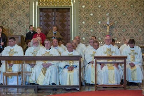 „Mindig különleges és kiemelkedő jelentőségű esemény a papszentelés egy egyházmegye életében – mondta Máger Róbert püspöki szertartó. – Az Úristen gondviselő szeretetét ismerjük föl benne, aki felszentelt szolgái által kíván gondoskodni népéről. A pap ugyanis Krisztusnak, a jó pásztornak a megjelenítője a rábízottak körében. Nehéz tapasztalat, hogy ma sokkal kevesebb papja van a Pécsi Egyházmegyének, mint a korábbi időkben. Egy papnak most jóval több települést kell lelkipásztorként ellátnia, mint régebben, ez sok energiát kíván. Ezért is vált szükségessé, hogy jól előkészített rendezési terv mentén összevonjunk plébániákat, s hogy a megyéspüspök ésszerűsítésekkel enyhítse papjai terheit. Az új papi hivatásokért való imádság állandó feladata az egyháznak minden időben. A hivatás ugyanis az Isten ajándéka, nem pusztán emberi elhatározás. Ugyanakkor az emberi tényezőt, a hivatás felismerését a fiatalok lelki nevelésével folyamatosan erősíteni kell, hogy meghallja az ember, ha az Isten valami másra hívja, mint a mai világ: a neki történő elköteleződésre és az emberek szolgálatára.”
