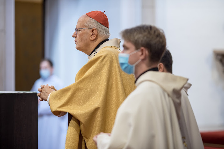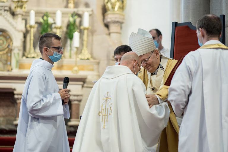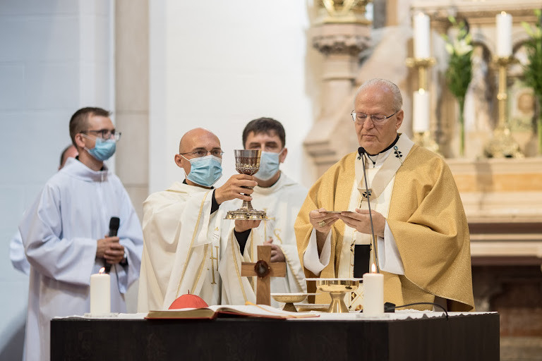 A vírushelyzet miatt az előkészületekbe bizonytalanság is vegyült – vajon a szertartást meg lehet-e majd tartani, és ha igen, milyen körülmények között. Nemhiába köszönte meg a szentmise elején Vízi Elemér provinciális Erdő Péter bíborosnak, hogy ebben a sajátos helyzetben is vállalta a személyes jelenlétet. A szentmise az előírt egészségügyi óvintézkedésekkel – maszkban, a padsorokban megfelelő távolságtartással – és az új, beépített kamerarendszernek köszönhetően online közvetítéssel zajlott.