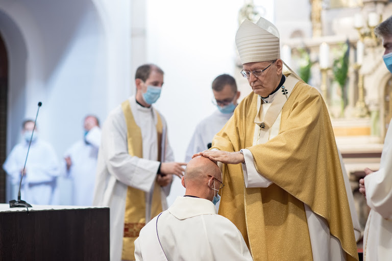 A szentbeszéd után következett a papszentelés, benne a lelkipásztori hivatásról szóló kérdésekre adott négyszeri „Akarom”, majd „Akarom, Isten segítségével” válasszal, a földre borulás szép gesztusával, a Mindenszentek litániájával, valamint a főpásztor és a paptársak áldásával, illetve köszöntésével. A szentmise végén pedig Erdő Péter mosolyogva azzal fordult az épp felszentelt paphoz, hadd részesüljön elsőként az újmisés áldásból. Felemelő és ugyancsak mély értelmű gesztus volt, ahogy Hiba György megáldotta előtte térdeplő főpásztorát, s a bölcsesség, az értelem, a tudomány, a tanács, az erő, a jámborság és az istenfélelem lelkét kérte számára.