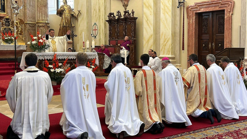 Az evangéliumi rész felolvasása és a Veni Sancte Spiritus himnusz eléneklése után a felszentelés szertartása a jelölt bemutatásával kezdődött, aki a bukaresti Szűz Mária Kegyelmek Anyja-plébániához tartozik. (A magyarul Barátok templomaként ismert plébániatemplom Bukarest legrégebbi katolikus temploma, ahol a román mellett magyar és német nyelven is miséznek – a szerk.)