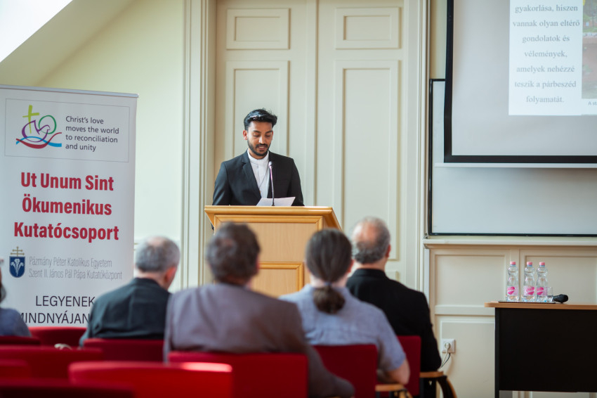 Bartal Boróka, a PPKE HTK hallgatója bemutatta a Párbeszéd és misszió dokumentumot, vázolta keletkezése körülményeit és a létrehozásában közreműködők – VI. Pál és Szent II. János Pál – szándékait. A dokumentum alapvetése, hogy a párbeszéd több mint vita: a kölcsönös gazdagodás eszköze, melyben a nyitás, nyitottság kulcsszó.