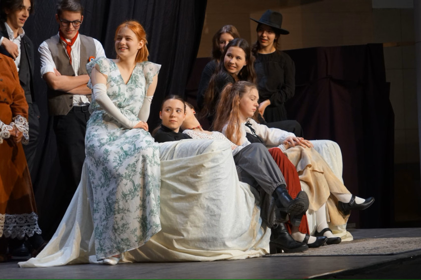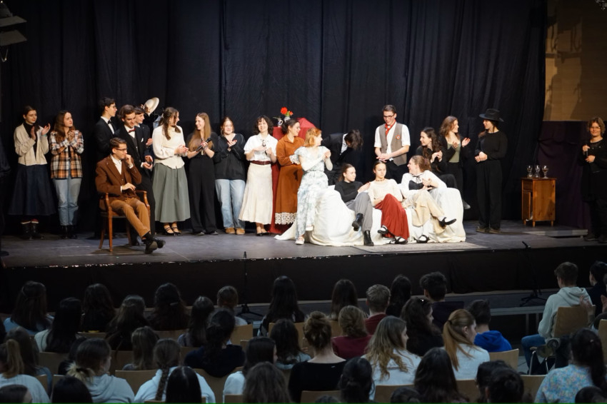 L. V. E.: A darab vázlata ugyan már korábban megszületett, de egy időre pihenni hagytuk. Mikor megmutattam Hajni néninek, és javasolt némi változtatást, említettem neki azt is, hogy szeretnék rendezni, ezért próbaként, gyakorlásként megírtam és megrendeztem tavaly négy kisebb darabot is a segítségével – október 23-ra, március 15-re, a grecciói karácsony emlékére és Mikulásra. Előbbiekre külön alapítottam egy felsős színjátszós csoportot. Ez idő alatt végig a fejemben volt, hogy a Párizs virágait szeretném továbbvinni. Az első darabom bemutatója nagyon megihletett, ezért folytattam a szöveg csiszolását. Adott volt, hogy mivel minden évben februárban bemutatunk egy darabot, és azt visszük ki testvériskolákba is, ha befejezem, előadhatjuk a társulattal. Gyakorlatilag nulláról építettem akkor újra, beemelve azt, amit a korábbi darabok alapján megtanultam. Persze a már kidolgozott szereplők és az alapvető történetszálak megmaradtak.