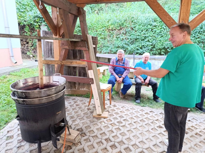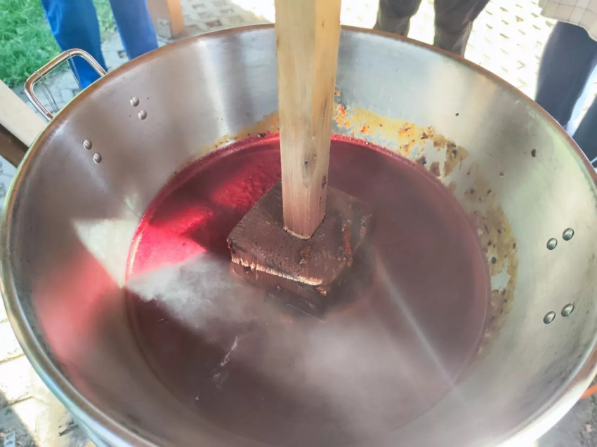 Négy óra után már jön az új munkaerő, ők délelőtt munkahelyeiken voltak. Most már az üst széléről le lehet lopkodni az oda kiszáradt lekvárdarabokat, hiszen lassan már tíz centivel lentebb van a lekvár teteje, mint amikor elkezdtétek.
