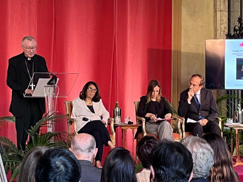A díjátadót megelőzően Parolin bíboros válaszolt a jelen lévő újságírók kérdéseire az ukrajnai és a közel-keleti konfliktussal kapcsolatban. Kijelentette, hogy a háború soha nem lehet igazságos. Utalt a szentföldi Igazságosság és Béke Bizottság által közzétett dokumentumra, amely vitatja az igazságos háború kifejezés használatát a gázai erőszakkal kapcsolatban, és annak helytelenségére hívja fel a figyelmet. „Tudjuk, hogy az igazságos háború fogalma körül ma sok vita zajlik, és hogy az igazságos háború a védelmi háború. Ma azonban a rendelkezésre álló fegyverekkel igen nehézzé válik ez a fogalom. Azt hiszem, hogy nincs még végleges álláspont erről, a kifejezés újrafogalmazás alatt áll.”