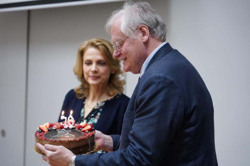 A PPKE BTK vezetősége nevében Birher Nándor dékán, a közvetlen kollégák képviseletében Dobos István tanszékvezető köszöntötte az ünnepeltet.