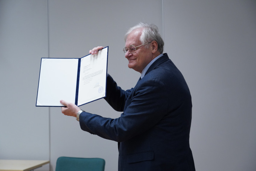 Hargittay Emil a régi magyar irodalom, különösen a barokk irodalom és lelkiség, továbbá Pázmány Péter életművének kutatása terén végzett több mint négy évtizedes tudományos és tudományszervező tevékenysége, valamint az egyetemért és a Bölcsészet- és Társadalomtudományi Karért végzett több évtizedes munkája elismeréseként Veres András püspök, az egyetem nagykancellára által adományozott Pázmány-emlékérem kitüntetést vehetett át Kuminetz Géza rektortól.