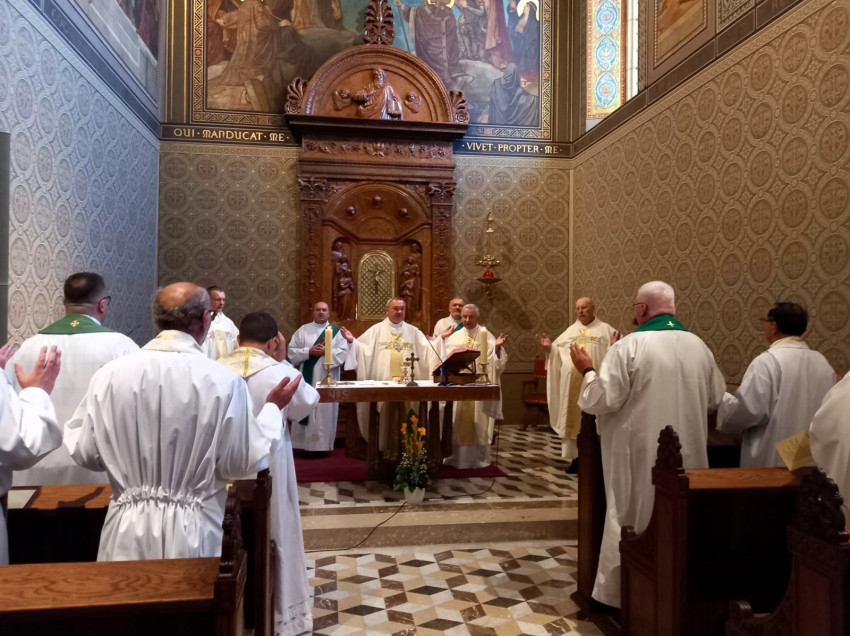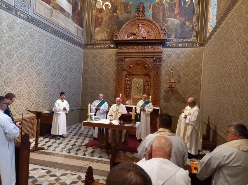 A második nap reggelén a temesvári egyházmegyés munkatársak közös szentmisét ünnepeltek a székesegyház Corpus Christi kápolnájában, amelyet Felföldi László püspök celebrált. Szentbeszédében arra buzdította a jelenlévőket, hogy legyenek a kor jó apostolai abban az egyházmegyében, amelyben dolgoznak, találják meg életük értelmét, békéjét és biztonságát, melyet mindig újra kell gondolniuk a személyes és közösségi életben.