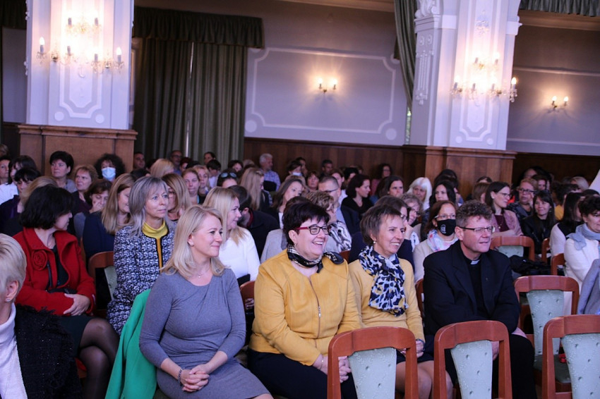 Ugrits Tamás pasztorális helynök, iskolabiztos előadásának fókuszában az a kérdés állt, milyen legyen az a nevelő, tanár, aki nap mint nap ott áll a gyerekek előtt, és tanítja őket. Párhuzamot vont Jézus apostolainak küldetése és a pedagógus megbízatása között. Beszédét az evangélium csodálatos kenyérszaporításról szóló történetére építette „Ti adjatok nekik enni” mottóval.