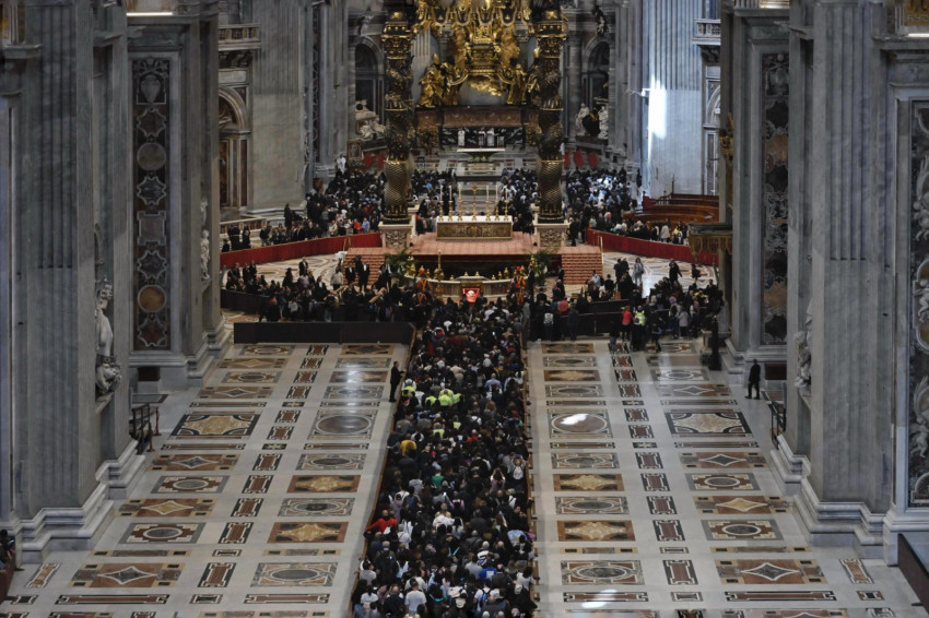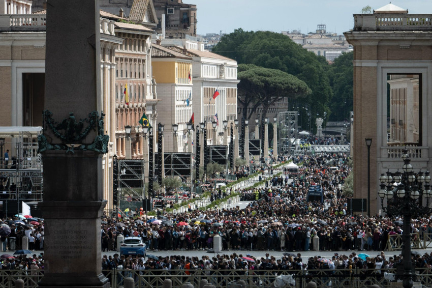 A Szentszéki Sajtóközpont közleménye szerint szerda reggeltől, miután a Szent Márta-ház kápolnájából átvitték a Szentatya koporsóját a Szent Péter-bazilika főoltára elé, április 25-e délig 150 ezren rótták le kegyeletüket Ferenc pápa koporsója előtt.