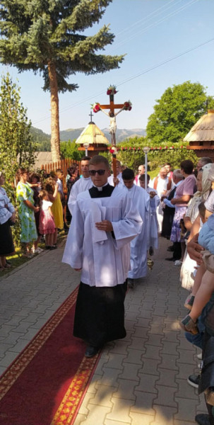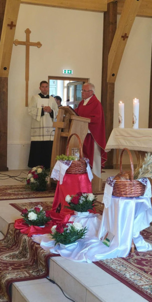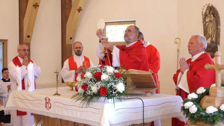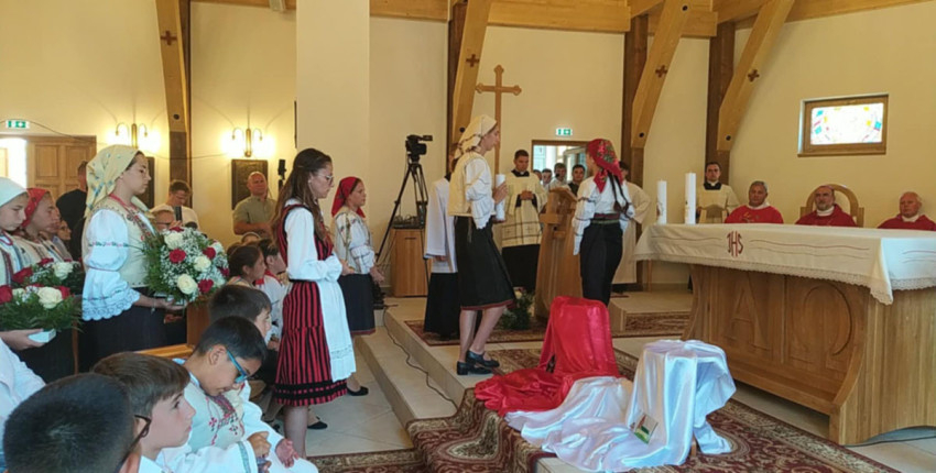 Az eucharisztia ünnepléséhez szintén népviseletbe öltözött fiatalok vitték az oltárhoz az adományokat. A tabernákulumot a szentáldozás után szentelték meg.
