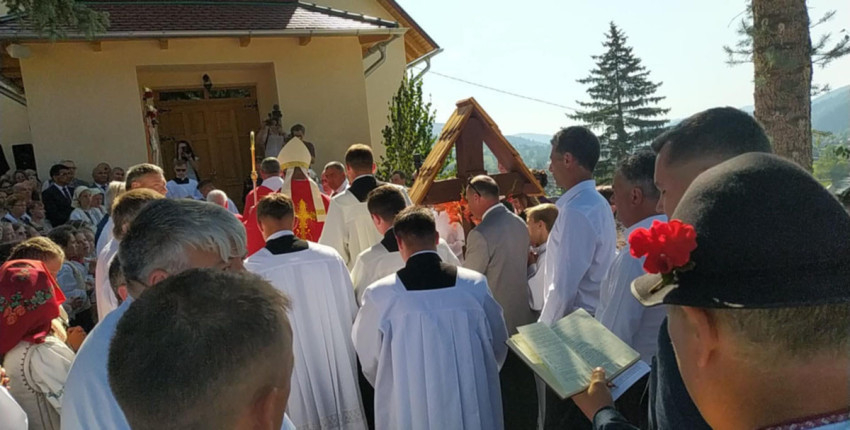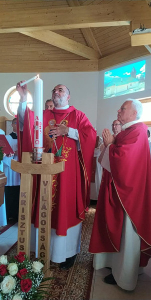 A hívek számára könnyebben megközelíthetőbb területen a jubileumi szentév emlékére keresztet is állítottak – ennek megáldásával kezdődött a templomszentelés ünnepsége.