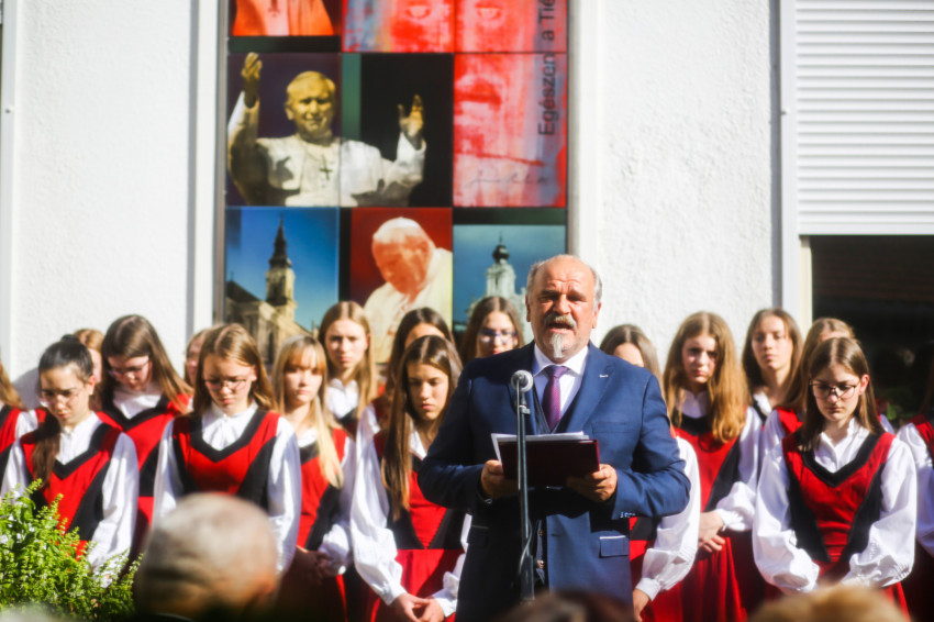Az egybegyűlteket Farkas Pál, a Wojtyła-ház munkatársa, majd Kecskemét város nevében Nemcsik Mátyás önkormányzati képviselő köszöntötte.