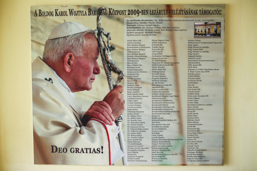 Kecskemét belvárosától néhány perc sétára, egy lakótelep házai között bújik meg a Wojtyła Ház. A helyi műemléki védettség alatt álló épületet 2006-ban kapta használatba a szociális intézmény az önkormányzattól, és széles körű összefogással újította fel erősen elhasználódott állapotából. Két nagyterem fogadja be a Barátság Központ programjait. Az egyikben gyűlnek össze nap mint nap ebédidőben a gondozottak, mintegy 120 fő, a másikban ezúttal fotókiállítás jelzi, a ház kulturális programokkal is várja támogatottjait. Az épület mögött aprócska kert, melyet erre az alkalomra újítottak fel a támogatók. A napsütésben itt ünnepelnek, a kertet megtöltik a vendégek, az intézmény támogatottjai és a Kodály Iskola Aurin leánykara. A ház kertre néző falán helyezték el a Szent II. János Pál pápát ábrázoló tűzzománcképet.