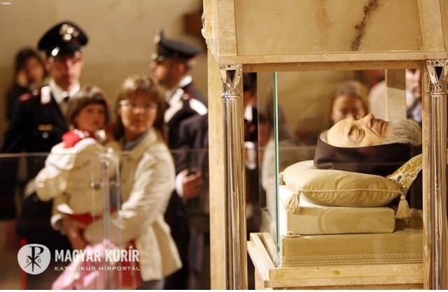 Február 11-én délelőtt Rino Fisichella érsek, az Új Evangelizáció Pápai Tanácsának elnöke a zárószentmise után elkíséri Pio atya földi maradványait Pietrelcinába, míg Mandić atya holttestét visszaszállítják Padovába. A Nápoly közelében fekvő Pietrelcina kisvárosban született Pio atya 1887. május 25-én, és 1916. február 17-én, tehát éppen száz éve járt ott utoljára. Ez a mozzanat is jellemző Pio atyára: miután a hivatása elszólította hazulról, és kezét az eke szarvára tette, nem tért vissza a mindig is szeretett szülőfalujába.