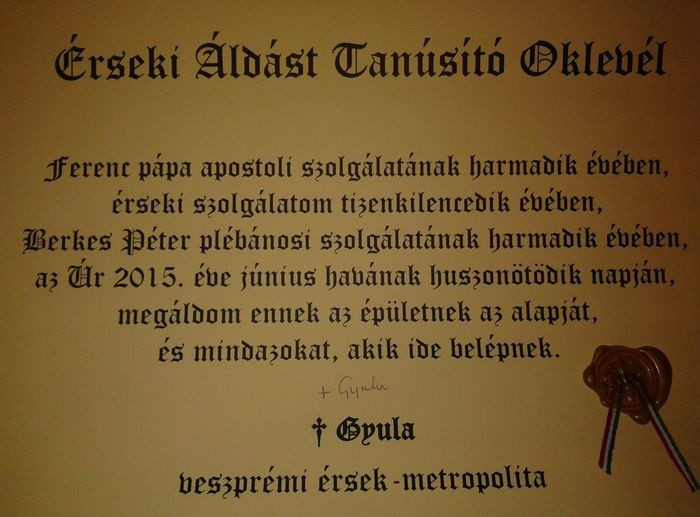 Az ünnepség további részében Márfi Gyula érsek megáldotta az építési munkálatokat. „Szakadt a zápor, ömlött az ár, süvített a szél, és nekizúdult a háznak, de nem dőlt össze, mert szikla volt az alapja” – idézte Máté evangéliumát, majd a jelenlévők kíséretében az építkezés helyszínére vonulva Kontrát Károllyal, Hebling Zsolttal és Vida Mihály világi elnökkel közösen időkapszulát helyezett el az épület alapzatában. A jövőnek szánt emlékben érseki oklevél, az adományozók névjegyzéke, egy feszület és napjaink fémpénze található, valamint sok-sok gyermekrajz és egy kis ministráns verse is.