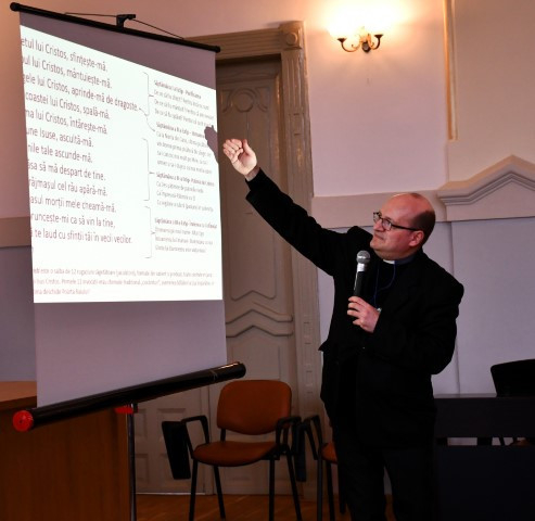Az elmélkedés első részében a meghívott előadó, Marius Taloș jezsuita szerzetes az egyik legismertebb és legkedveltebb imáról, a Krisztus lelke, szentelj meg engem kezdetű fohászról beszélt, megosztotta „ennek az imának néhány titkát, amelyet Loyolai Szent Ignác ismertetett meg a hívekkel a lelkigyakorlatai kezdetén”.