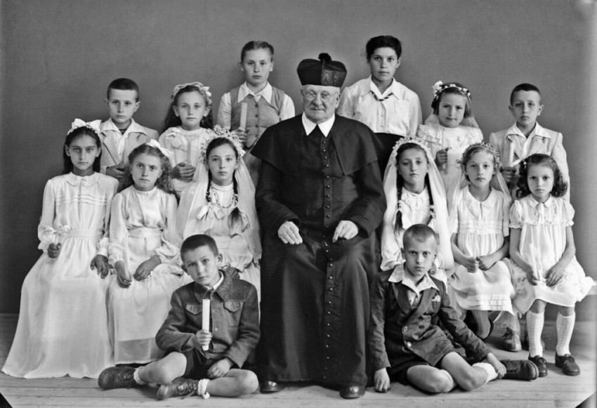 Egymásután léptek el előttünk, fel az emeletes lakásra a főpapok, mind lila díszben, nekem tetszőleg gőgös méltósággal. Csak egy nagy termetű, és amint később megtudtuk, hatalmas eszű „cilinder”-es pap: Beke kanonok állott velünk szóba. Azt kérdezte: