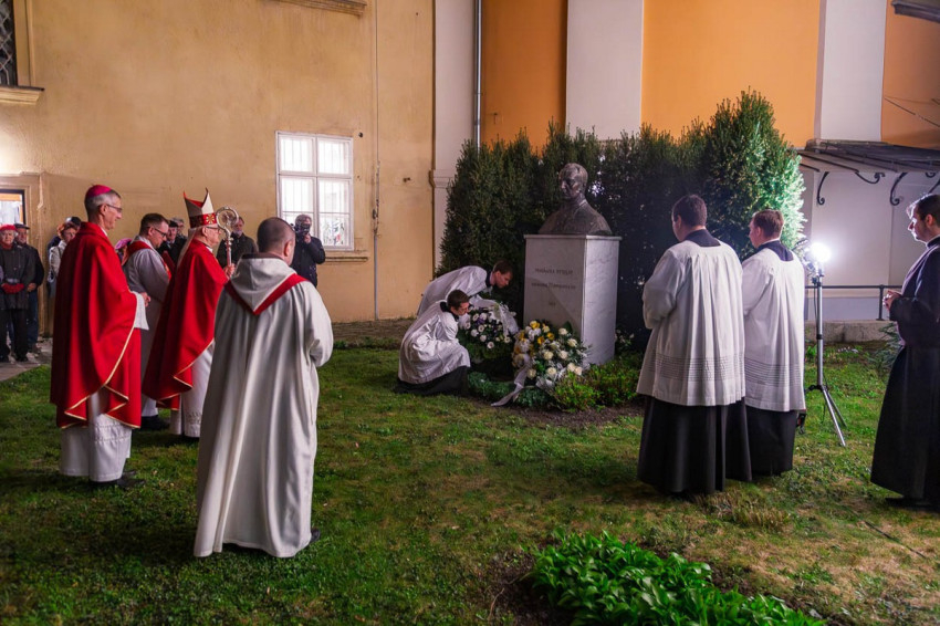 A szentmise után a hagyományokhoz híven a szeminárium udvarán imádkoztak Prohászka Ottokár boldoggá avatásáért Spányi Antal püspök vezetésével. A papnövendékek asszisztálásával koszorúkat helyeztek el bronzszobránál.