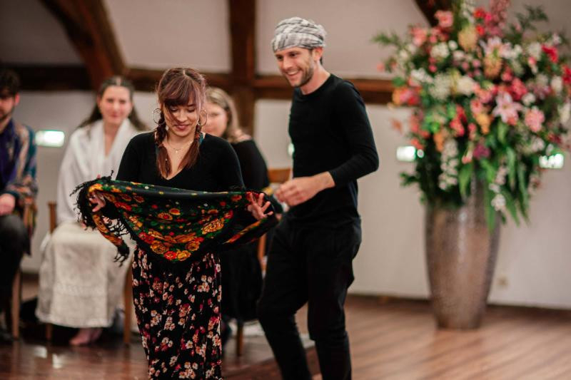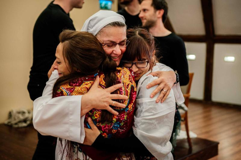 Versegi Beáta, a Nyolc Boldogság Közösség szerzetesnője és Hoffmanné Toldi Ildikó magyartanár, drámapedagógus, playback színész alkotói kapcsolata nagyon érdekesen alakult. „Ildi az egyik keresztlányom osztályfőnöke volt hat-hét évvel ezelőtt – emlékezik vissza Beáta nővér. – Már akkor mondta a barátnőm, hogy egyszer meg kell ismerkednünk. Nem gondoltuk volna, hogy a találkozásunk később ennyire meghatározó lesz.” Ildikó így emlékezik vissza a kezdetekre: „Találkoztunk 2019-ben egy ifjúságpasztorációs előadáson. Már ott kialakult Beátával az együttműködésünk. Drámapedagógiával érzékenyítettem a jelenlévőket az előadásában elhangzottakra. Megállapítottuk, hogy szívesen dolgoznánk együtt, hiszen egy nyelvet beszélünk, és mindkettőnk titkos vágya, hogy tegyünk valamit a mélyszegénységben élőkért.”